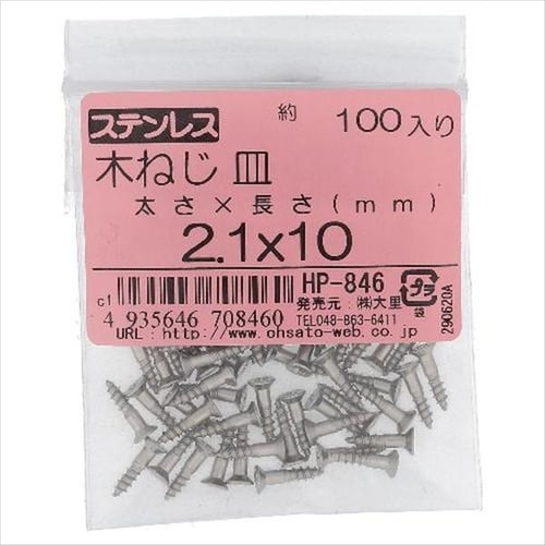 OHSATO ステン木ねじ サラ 2.1X13 100P A0A2-9149