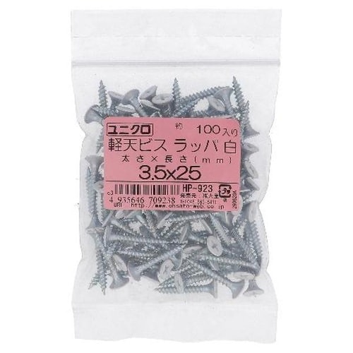 ・軽天材の固定用ビスです。・頭部は白色塗装になっております。・鉄製/ユニクロめっきです。 |