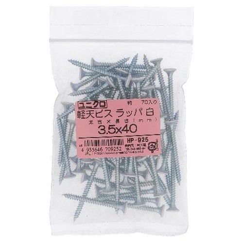 ・軽天材の固定用ビスです。・頭部は白色塗装になっております。・鉄製/ユニクロめっきです。