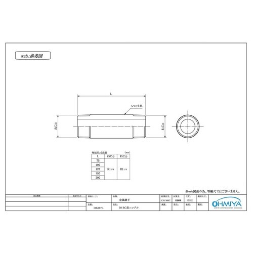 OK687L BC長ニップル 65x125L