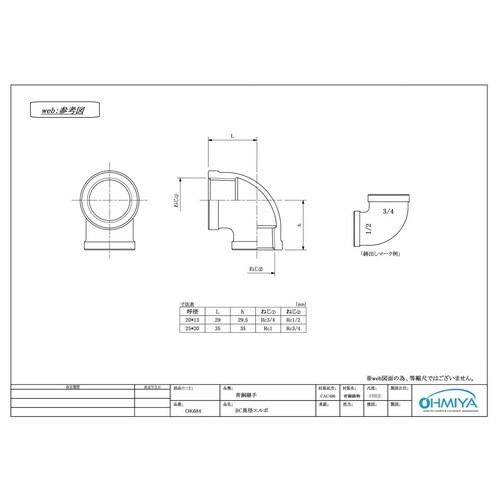 ・青銅製BCエルボ。・サイズ10(Rc3/8)から65(Rc2.5インチ)までの幅広いサイズをラインナップ。 |