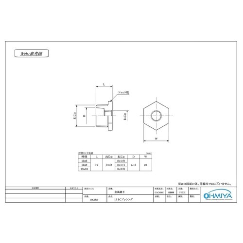 材質:CAC406C | 呼径:50×25mm | 単位:1個