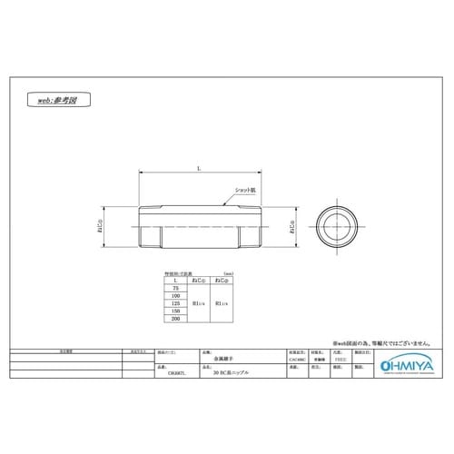 ・青銅製砲金【BC長ニップル(コア対応継手)】。 |