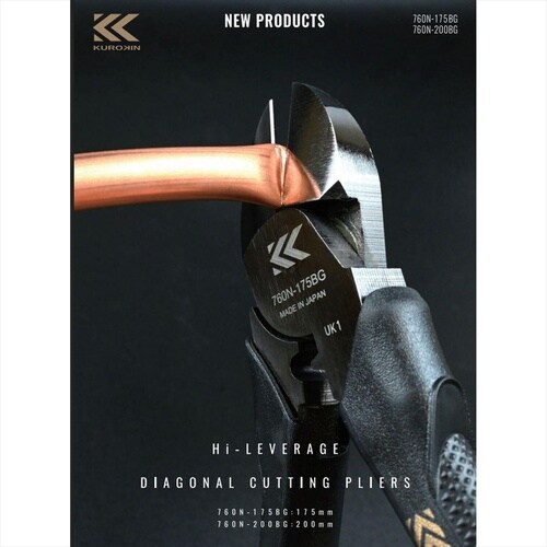 ・銅管潰し切り、ステップル(No.3)、VA/VVF線の切断から、結束バンドのツラ切まで可能な万能ニッパ。 |