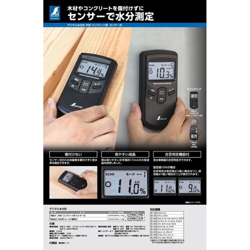 ・木材やコンクリートを傷付けずにセンサーで水分測定。 |