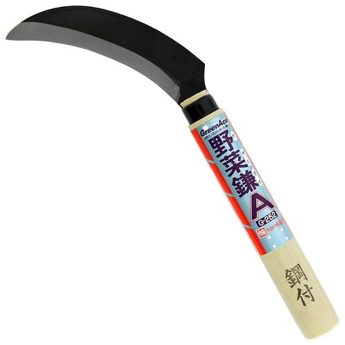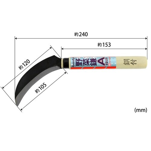 ・収穫作業に!。・特殊鋼付。・刃幅(mm):105。・柄長(mm):150。・タイプ:野菜鎌。 |