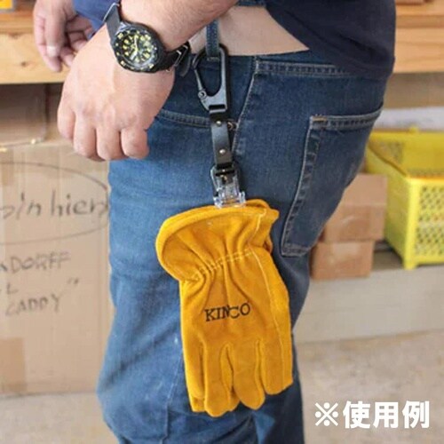 ・手袋・帽子・各種小物の吊り下げに!。・接続ベルトに革を使った小物ホルダー。・耐荷重は2kgです。・仕様:カラビナ×クリップ。・耐荷重(kg):2。