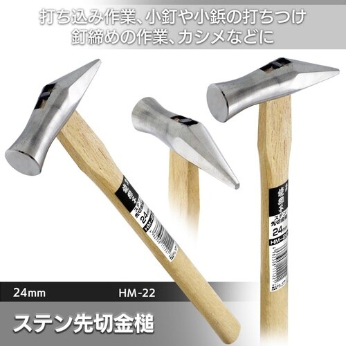 ・釘打ち・釘締めに!。・先切部で釘締めができます。・頭長(mm):115。・頭径(mm):24−27(楕円型)。・タイプ:先切金槌。 |
