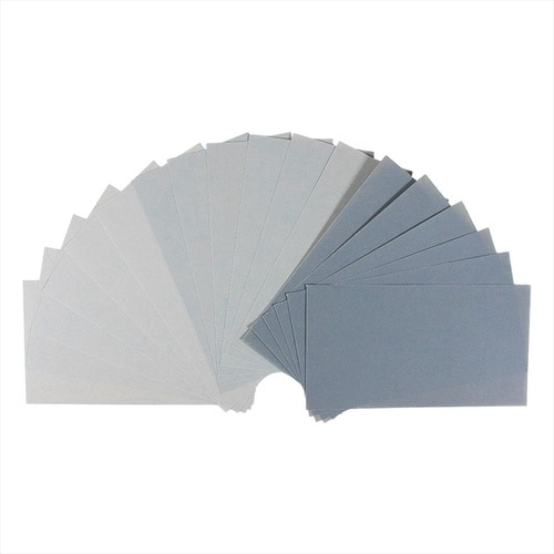 ・使いやすい!収納しやすい!。・76×140mmにカットしてあり、使いやすく収納しやすいサイズが重宝されます。・12枚入り。・粒度:#1000。・タイプ:耐水紙ヤスリ。・12枚入り。 |