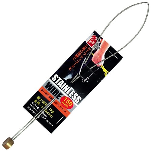 ・落下防止コードと工具の接続に!。・ワイヤーの広がりを防ぐリング付き。・最大荷重:1kg。・全長:約150mm。・ワイヤー径:約0.8mm。 |