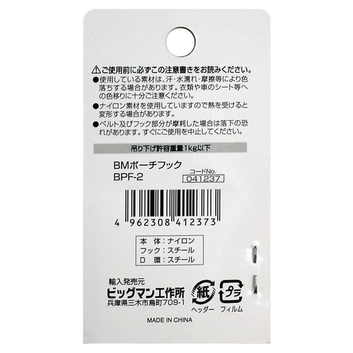 ・大型Dリング付き!。・吊り下げに便利な大型Dリング付き。・耐荷重:吊り下げ許容重量1kg以下。・ベルト通し幅(mm):約60。 |