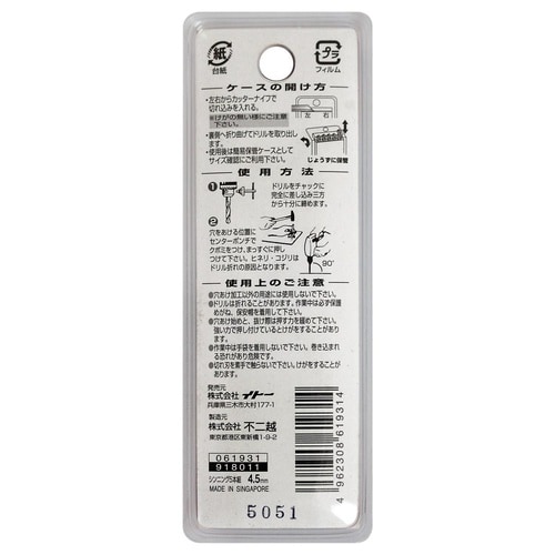 穴径(mm):4.5 | 軸径(mm):4.5丸軸 | タイプ:鉄工用 | 仕様:先端研磨シンニング刃 | 適応材:鉄・銅・アルミ・プラスチック・木材…