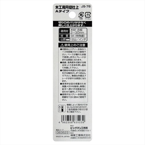 適応材:木材・合板2ー35mm/新建材2ー30mm | 山数:12山/インチ | 適応メーカー:日立・マキタ・リョービ | 適応工具:ジグソー | タ…