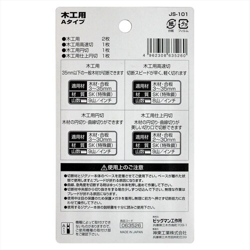 ・日本製のジグソー刃!差込Bタイプ!。 |