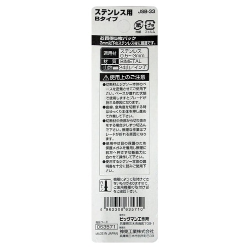 ・日本製のジグソー刃!差込Bタイプ!。 |