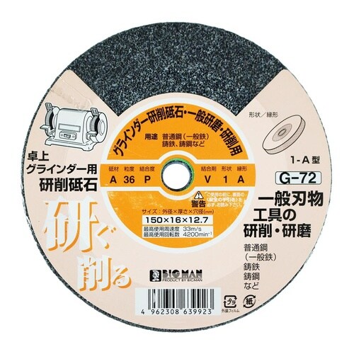 外径(mm):150 | 厚さ(mm):16 | 穴径(mm):12.7 | 適応工具:卓上グラインダー | 砥材:A | 粒度:36 | 結合度:P…