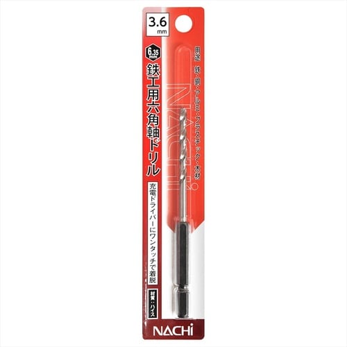 穴径(mm):3.7 | 軸径(mm):6.35(六角軸) | 適応材:鉄・銅・アルミ・プラスチック・木材 | 適応機種:充電ドライバー(ワンタッチで…
