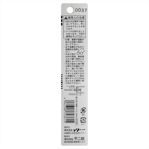 穴径(mm):3.9 | 軸径(mm):6.35(六角軸) | 適応材:鉄・銅・アルミ・プラスチック・木材 | 適応機種:充電ドライバー(ワンタッチで…