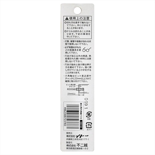 穴径(mm):7.5 | 軸径(mm):6.35(六角軸) | 適応材:鉄・銅・アルミ・プラスチック・木材 | 適応機種:充電ドライバー(ワンタッチで…