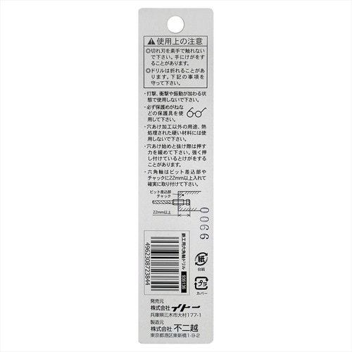 穴径(mm):10.5 | 軸径(mm):6.35(六角軸) | 適応材:鉄・銅・アルミ・プラスチック・木材 | 適応機種:充電ドライバー(ワンタッチ…