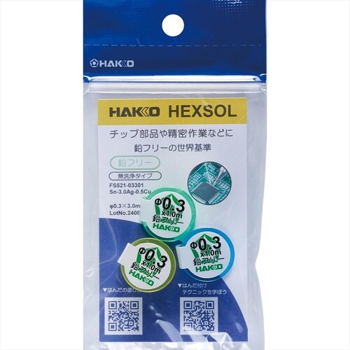 組成:スズ96.5%/銀3%/銅0.5% | 融点:217ー220°C | 線径:Φ0.6mm | フラックス:入り(ROL1) | 単位:1個