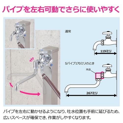 ・既存の万能ホーム蛇口を横振りSパイプ仕様に変更できるアダプターです。 |