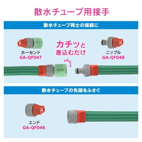 ・芝生や広範囲の水やりに便利な散水チューブ用の接手です。 |
