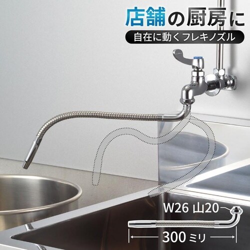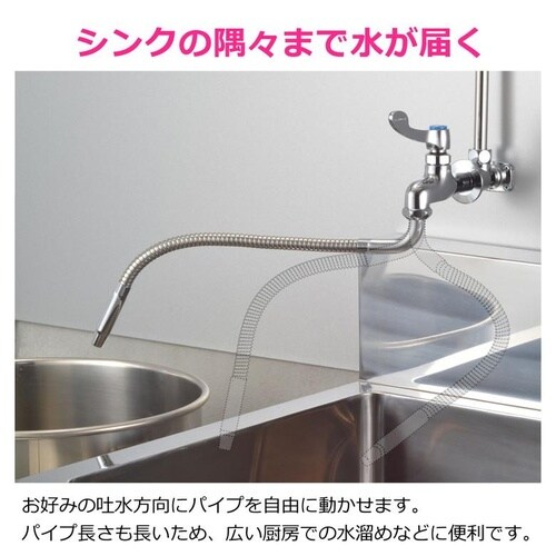 ・吐水位置を自由に調整でき、厨房での作業を快適にする300mmのフレキシブルパイプです。 |