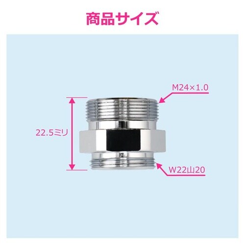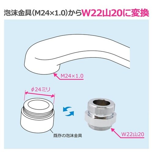 ・泡沫金具ネジのM24×1.0にW22山20ネジの泡沫金具を取付けることができるアダプターです。 |
