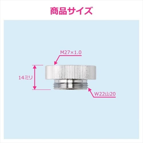 ・泡沫金具ネジのW22山20をホースや簡易浄水器を接続するためのふくらみのあるパイプ形状にするアダプターです。 |