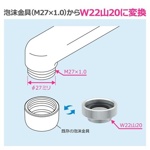 ・泡沫金具ネジのM27×1.0にW22山20ネジの泡沫金具を取付けることができるアダプターです。 |