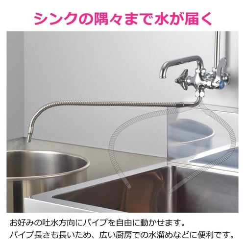 ・吐水位置を自由に調整でき、厨房での作業を快適にする800mmのフレキシブルパイプです。 |