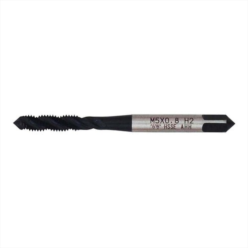 ・一般鋼材、真鍮、銅、アルミ、樹脂などの止り穴めねじ立てに。・切り屑が上に出る右ねじれ形状です。・刃先のホモ処理により切削油の持ちがよく、耐久性が抜群です。