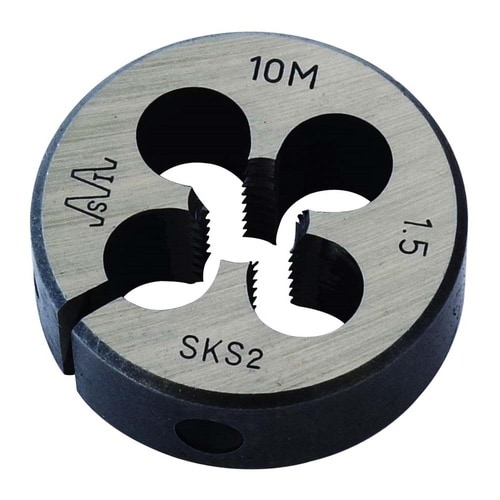 ・一般鋼材、真鍮、銅、アルミ、樹脂のおねじ切りや潰れたねじ山の再生に。・外径寸法38mmのダイスです。