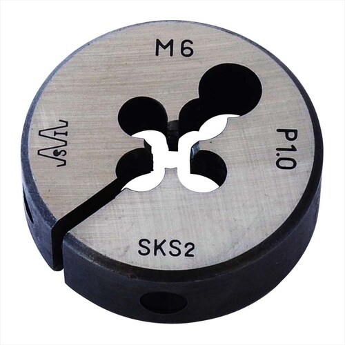 ・一般鋼材、真鍮、銅、アルミ、樹脂のおねじ切りや潰れたねじ山の再生に。・外径寸法38mmのダイスです。