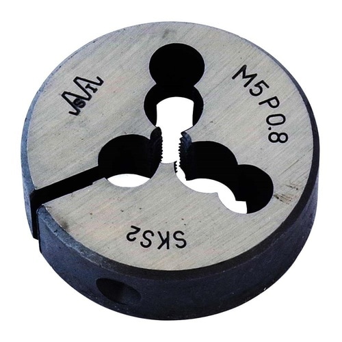 ・一般鋼材、真鍮、銅、アルミ、樹脂のおねじ切りや潰れたねじ山の再生に。・外径寸法38mmのダイスです。