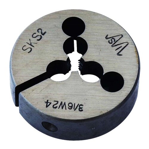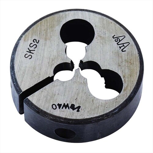・一般鋼材、真鍮、銅、アルミ、樹脂のおねじ切りや潰れたねじ山の再生に。・外径寸法38mmのダイスです。