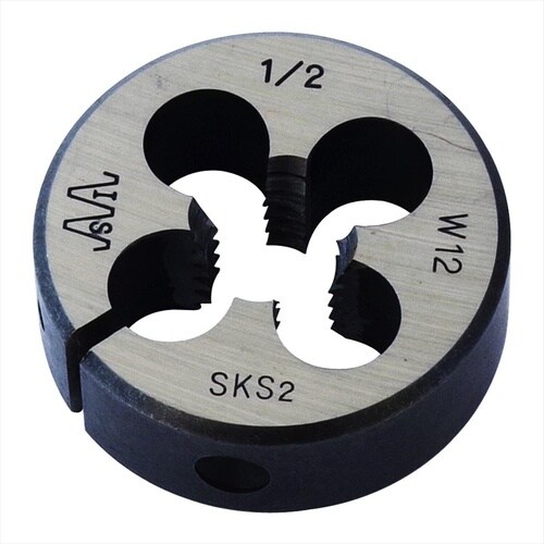 ・一般鋼材、真鍮、銅、アルミ、樹脂のおねじ切りや潰れたねじ山の再生に。・外径寸法38mmのダイスです。 |