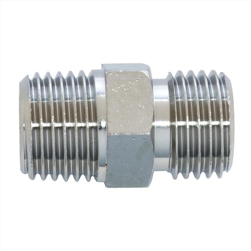 ・管用めねじに対する配管として。・管用テーパーねじと平行ねじをつなげる同径おねじです。 |