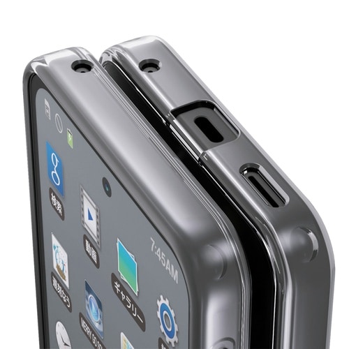 側面には弾力性のあるTPU(熱可塑性ポリウレタン)素材を、背面には強じんで透明度の高いポリカーボネート素材を使用した、スリムなスタイルのハイブリッドケースです。
