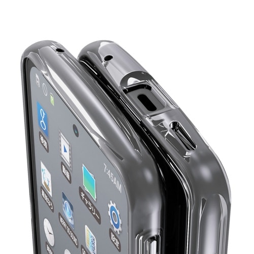 全周に配置した独自設計のエアークッションが衝撃を吸収し、側面に弾力性のあるTPU(熱可塑性ポリウレタン)素材を、背面に高硬度のポリカーボネート素材を使用したTOUGH SLIM LITEケースです。 |
