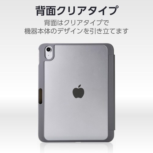 さらりとした表面の質感とゴールドパーツで上品さを演出するフラップケースです。背面はクリアで端末のデザインを引き立てます。 |