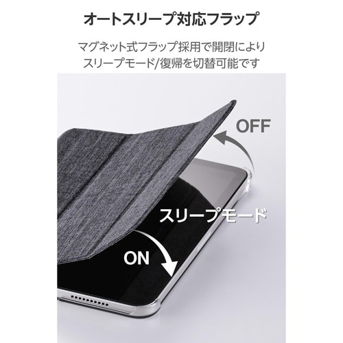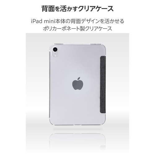 どんなシーンにも使いやすいファブリック生地を採用!軽さを重視する人におすすめの極限まで薄さにこだわったフラップケースです。シーンに合わせて2アングルにできます。端末の背面が見えるクリア素材を採用。 |