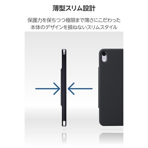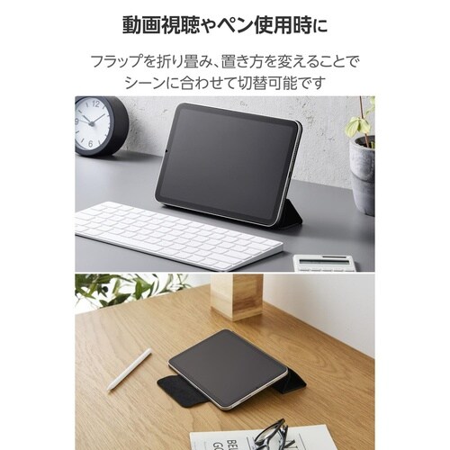 端末本体に内蔵されたマグネットを利用して、簡単に着脱できる超薄型・軽量設計のフラップケースです。動画視聴やタイピング等のシーンに合わせて2アングルにできます。 |