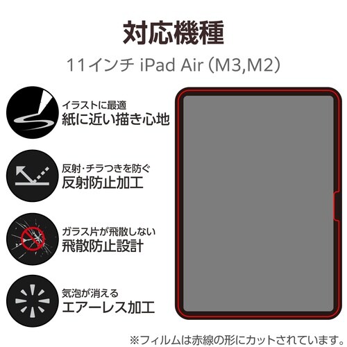エレコム 11インチ iPad Air ( M3 / M2 ) ガラスフィルム ケント紙 アンチグレア A0A3-5559
