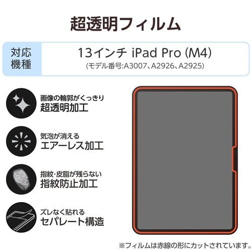 気泡がキレイに抜けるエアーレスタイプ。画面を傷や汚れから守る、超透明タイプの画面保護フィルムです。 |