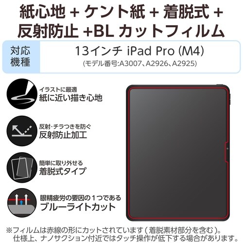 エレコム 13インチ iPad Pro (M4) フィルム 着脱式 ケント紙 ブルーライトカット A0A3-5579