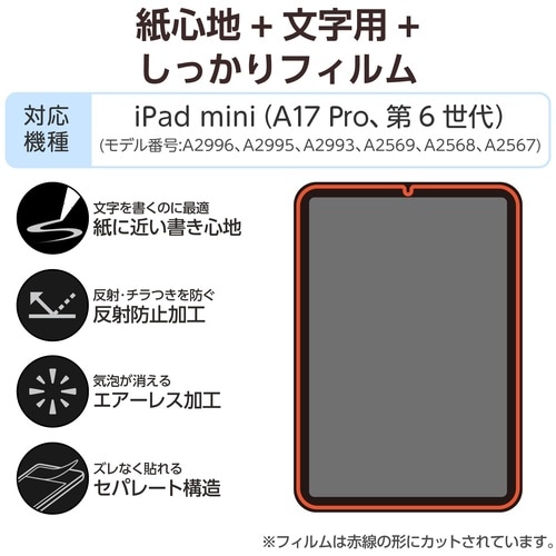 エレコム iPad mini ( A17 Pro ) / 第6世代 8.3インチ フィルム 文字用 アンチグレア A0A3-5607