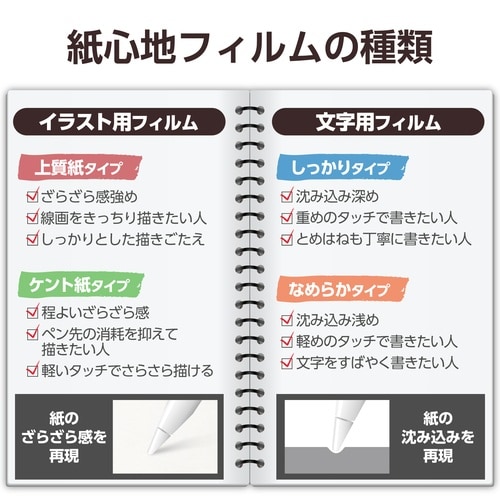 画面を傷や汚れから守る、指紋防止、反射防止タイプの紙心地フィルムです。特殊構造により、しっかりとしたペンの沈み込みを実感できる「文字を書く」ことにこだわった画面保護フィルムです。