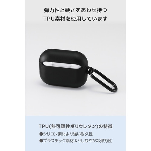 対応機種:AirPods Pro 3 | セット内容:ケース本体×1、カラビナ×1、両面テープ | 材質:ケース本体:TPU(熱可塑性ポリウレタン)・…